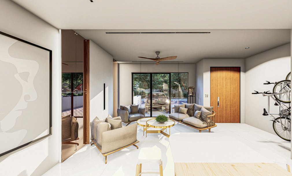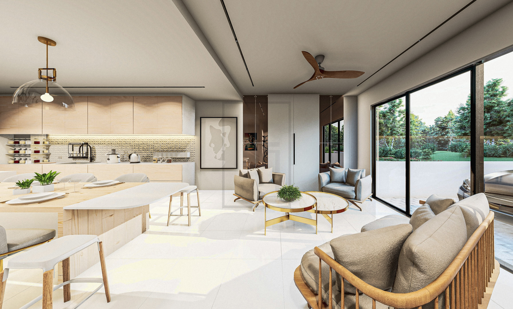 Our client’s ground floor plan was an open floor plan having both the dry kitchen, dining and living room all in one space. The client requested for an island to be the centrepiece of the space. we took this to our advantage by proposing the island to be also used as their dining table. Through this, we were able to incorporate all the essential spaces into the confined boundary we had to play with.